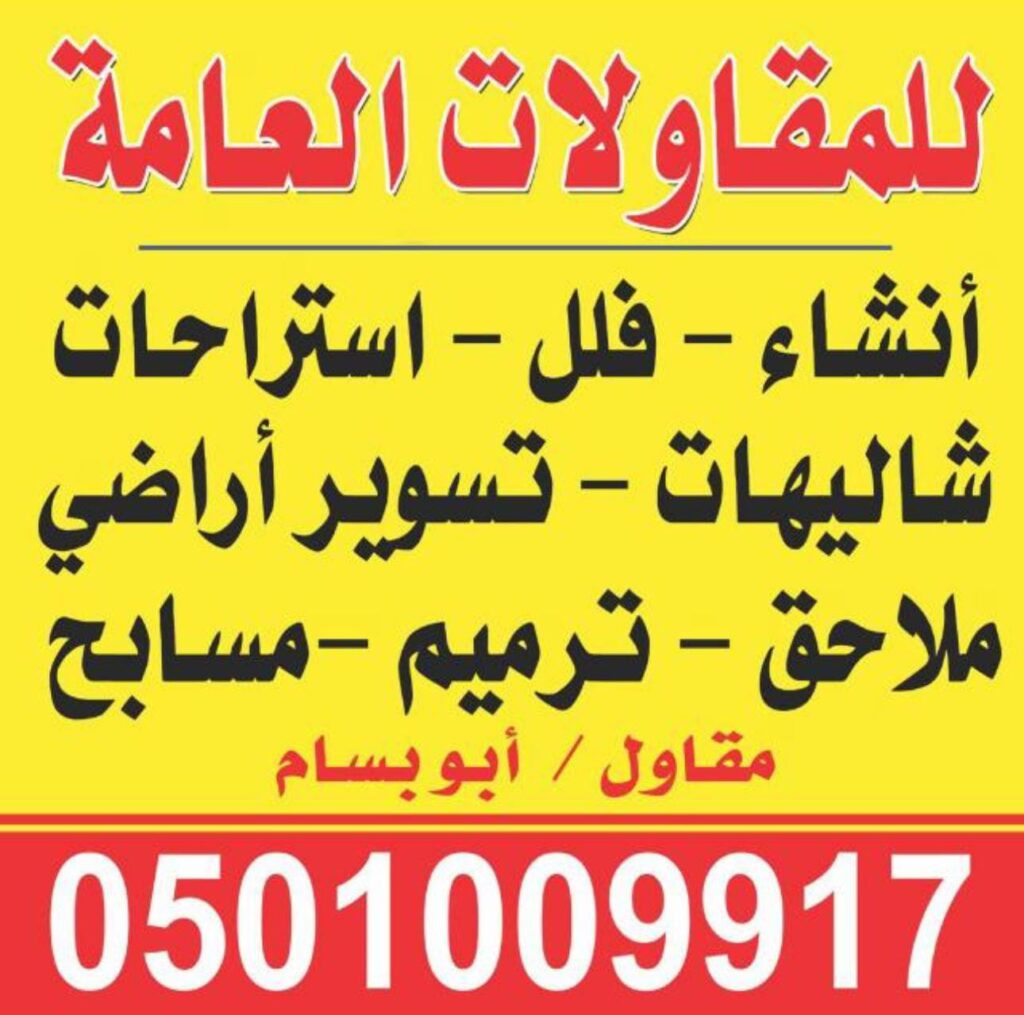 أفضل مقاول بناء بالرياض نقدم معاينه مجانيه واقل الاسعار بالرياض اتصل بنا الان ودعنا ننجز عملك بكفاءه عاليه واقل وقت ممكن 0501009917 اتصل بنا واتساب ★★★★★ Rated 4.8 out of 5 4.8 rating on Google تنفيذ كافة اعمال المقاولات نفيذ كافه الترميمات والتشطيبات بالرياض تنفيذ اعمال التكسير والهدم والترميم وبناء الملاحق واعمال الياسه وتركيب الحجر وتركيب السراميك والبورسلان والرخام وتنفيذ اعمال الكهرباء والسباكه وكافه انواع الدهانات والتشطيبات الحديثه بكل احترافيه وبسرعه فائقه يوجد لدينا فنيين علي اعلي مستوي كما اننا نقدم افضل الاسعار بالرياض 0501009917 واتساب مقاول عام بالرياض 0501009917 نعمل علي مدار 24 ساعة هدفنا دائما راحة العملاء فقط اتصل بنا نصلك اينما كنت واتساب